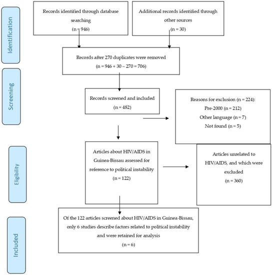 To fill this gap, we aimed to systematically review the published data on HIV/AIDS in Guinea-Bissau, explore the role of political instability in the literature on the country’s HIV/AIDS epidemic, and highlight areas that might be considered in future research.