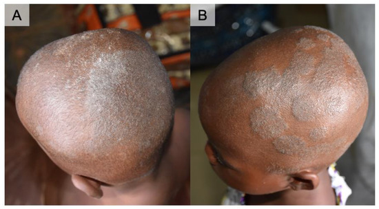 Dermatophytoses are the most frequent forms of fungal infections, affecting 20−25% of the human population [3,14]. Tinea capitis predominantly affects children and is highly prevalent in sub-Saharan Africa [2].