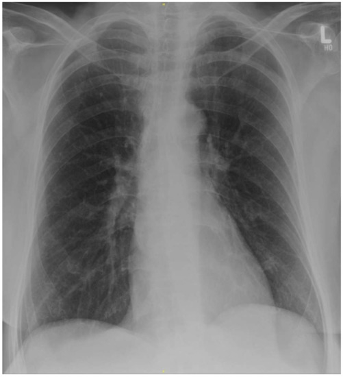 Supine chest X-ray at the time of admission without evidence of pneumonic consolidations or ground glass opacities. Courtesy of Prof. Gerhard Adam, Department of Diagnostic and Interventional Radiology and Nuclear Medicine, University Medical Center Hamburg-Eppendorf, Hamburg.
