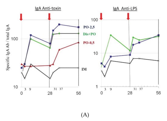 - Quiding, M.; Nordström, I.; Kilander, A.; Andersson, G.; Hanson, L.Å.; Holmgren, J.; Czerkinsky, C. Intestinal immune responses in humans. Oral cholera vaccination induces strong intestinal antibody responses, gamma-interferon production, and evokes local immunological memory. J. Clin. Investig. 1991, 88, 143–148. [Google Scholar] [CrossRef][Green Version]