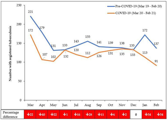- World Health Organization. Impact of the COVID-19 Pandemic on TB Detection and Mortality in 2020. Available online: https://cdn.who.int/media/docs/default-source/hq-tuberculosis/impact-of-the-covid-19-pandemic-on-tb-detection-and-mortality-in-2020.pdf (accessed on 30 March 2021).