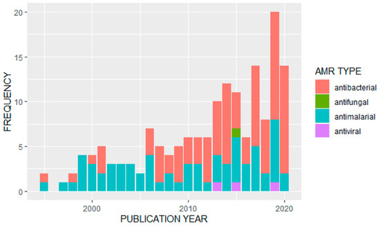 Distribution of studies on different AMR types by publication year.
