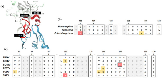 - Ng, M.; Ndungo, E.; Kaczmarek, M.E.; Herbert, A.S.; Binger, T.; Kuehne, A.I.; Jangra, R.K.; Hawkins, J.A.; Gifford, R.J.; Biswas, R.; et al. Filovirus receptor NPC1 contributes to species-specific patterns of ebolavirus susceptibility in bats. Elife 2015, 4, 1–22. [Google Scholar] [CrossRef]