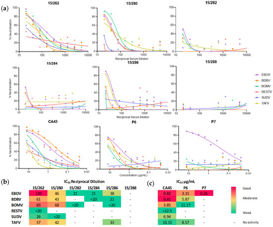 - Bramble, M.S.; Hoff, N.; Gilchuk, P.; Mukadi, P.; Lu, K.; Doshi, R.H.; Steffen, I.; Nicholson, B.P.; Lipson, A.; Vashist, N.; et al. Pan-filovirus serum neutralizing antibodies in a subset of Congolese ebolavirus infection survivors. J. Infect. Dis. 2018, 218, 1929–1936. [Google Scholar] [CrossRef] [PubMed]