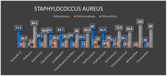 Figure 8. Distribution of antimicrobial susceptibility profiles of S. aureus across different available antibiotics.