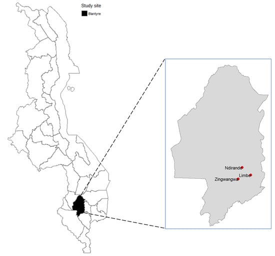This was a cross-sectional study that was carried out between March and September 2020 at three conveniently selected outpatient health centers representing community settings in Blantyre, Malawi (Figure 1). Outpatient health centers were chosen as points of data collection due to the convenience of sample collection, storage and transportation. These health centers were Limbe, Zingwangwa and Ndirande. These health centers are the main public healthcare facilities providing outpatient services to a population of over 800,264 in urban areas of Blantyre district.