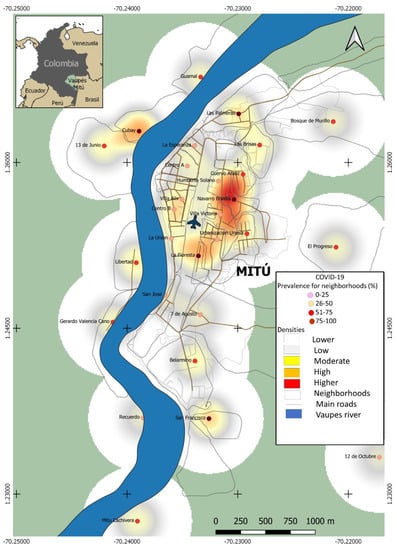 This work’s objective was to describe the seropositivity, spatial distribution, and clinical and sociodemographic variables related to SARS-CoV-2 infection in a population of indigenous ancestry from the municipality of Mitú, Vaupés, Colombian Amazon.