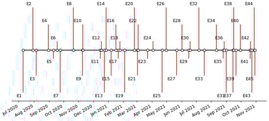 Monselise et al. [23] give an example of direction for the event identification process using topic modeling. Their study was directed at the public sentiment about COVID-19 immunization in the United States using Twitter posts. They applied VADER and BERT for sentiment and emotion classification (“positive”, “neutral”, and “negative”), and online non-negative matrix factorization (ONMF) for topic modeling. They could identify trending topics reflecting public concern about the vaccination, and respective responses to the topics through the polarity of emotions and sentiments, stating that misinformation is one of the major causes of negative emotions.