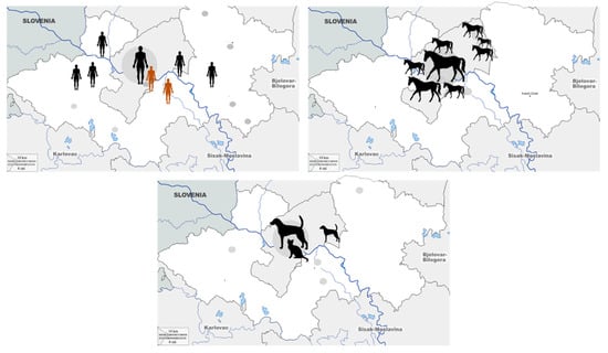 The sampling area (human and animal sampling) in northwestern Croatia is presented in Figure 1.