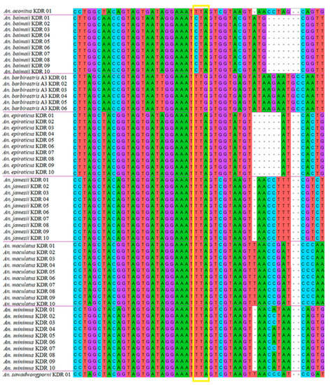 - Wilai, P.; Namgay, R.; Ali, R.S.M.; Saingamsook, J.; Saeung, A.; Junkum, A.; Walton, C.; Harbach, R.E.; Somboon, P. A multiplex PCR based on mitochondrial COI sequences for identification of members of the Anopheles barbirostris complex (Diptera: Culicidae) in Thailand and other countries in the region. Insects 2020, 11, 409. [Google Scholar] [CrossRef]