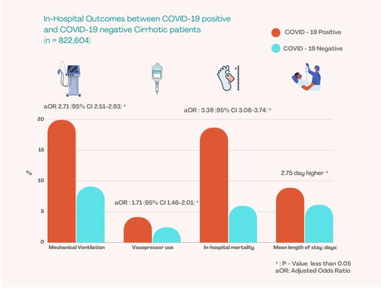 This retrospective study utilized the Agency for Healthcare Research and Quality (AHRQ) 2020 NIS dataset, which is based on hospitalizations from 1 January 2020 to 31 December 2020. The NIS is a nationwide administrative database developed by the Agency for Health Care Research and Quality (AHRQ) as part of the Health Care Cost and Utilization Program (HCUP). Approximately 20% of all United States (U.S.) hospitalizations are represented within this database. These hospitalizations are a nationally representative sample of all-payer discharges. All patients who were 18 years of age and older and were admitted to the hospital with history of liver cirrhosis were included in the study. This group was further divided based on concurrent diagnosis with COVID-19.