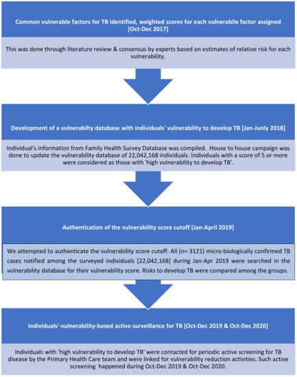 A flowchart representing the process followed for individual-vulnerability-based active surveillance of TB is shown in Figure 1.