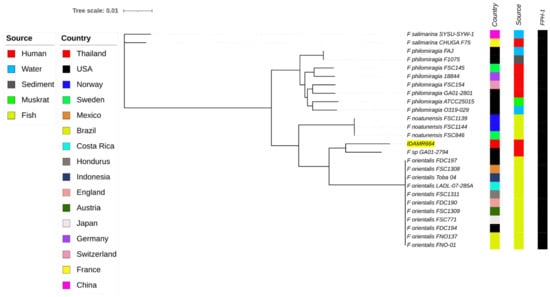 - Letunic, I.; Bork, P. Interactive Tree of Life (iTOL) v4: Recent updates and new developments. Nucleic. Acids Res. 2019, 47, W256–W259. [Google Scholar] [CrossRef] [PubMed]