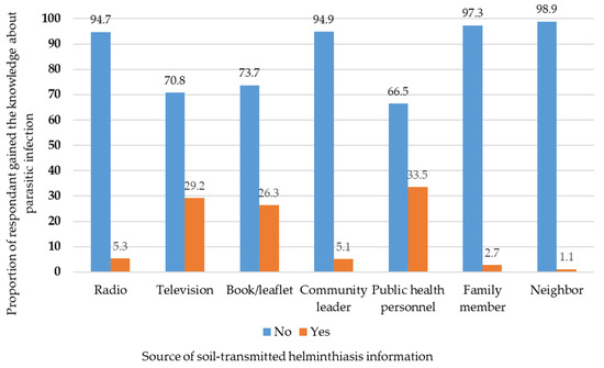 Proportion of respondents who gained knowledge on soil-transmitted helminthiasis by source.