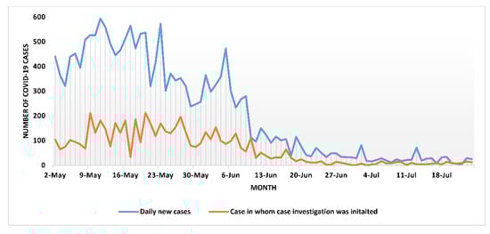 Thakur, N.; Vogt, F.; Satyanarayana, S.; Nair, D.; Garu, K.; Subedee, K.C.; Mandal, S.K.; Pokhrel, A.; Gautam, D.; Paudel, K.P. Operational Gaps in Implementing the COVID-19 Case Investigation and Contact Tracing in Madhesh Province of Nepal, May–July 2021. Trop. Med. Infect. Dis. 2022, 7, 98. https://doi.org/10.3390/tropicalmed7060098