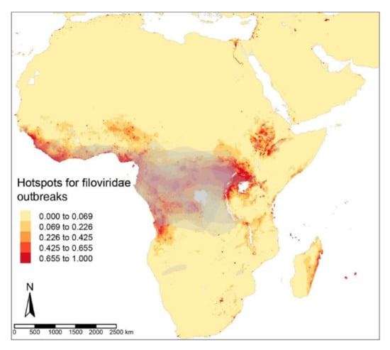 Here, we show that ecological, climatic, and landscape factors could predict future hotspots of human viral disease emergence on a global scale and could, thus, serve as a basis for surveillance and early warning systems. For the three groups of viral diseases studied, we were able to map areas at high risk of disease emergence based on the spatial distribution of disease reservoirs and hosts, as well as WHO data on the distribution of each disease. We found that human-related factors, particularly the impact of population growth on human-modified landscapes, were a common predictor of disease emergence. Filoviridae and Henipavirus outbreaks were also linked to rainfall, while Filoviridae and Coronaviridae emergences were favored by increases in the minimum nighttime temperatures. In addition, for Filoviridae, we noted the potential involvement of “unknown” variables (variables not used in this study). In Africa, these variables could relate to human behaviors, such as bushmeat consumption, that are often associated with EVD outbreaks [], biodiversity loss, or even other bioclimatic covariates. Interestingly, coronavirus diseases are the only ones to be positively impacted by human population densities. Similarly, the hotspots of Henipaviruses depended on areas of low elevation and low rainfall.