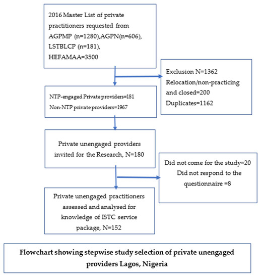 We performed a cross-sectional descriptive study using self-administered questionnaires to assess the knowledge of ISTC among 152 private non-NTP providers across 13 Local Government Areas in Lagos, Nigeria. The study took place between May 2018 and January 2019.