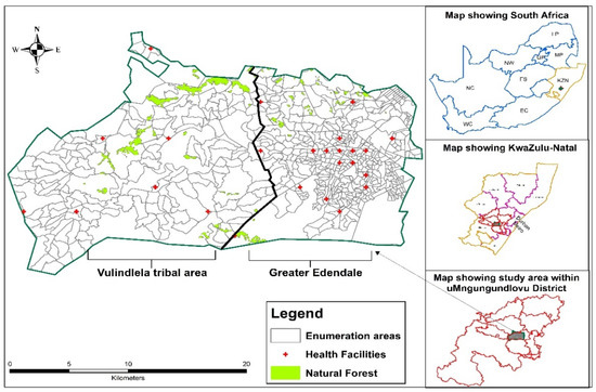 Location map of Vulindlela (rural) and Greater Edendale (peri-urban) area in the uMgungundlovu District, KwaZulu-Natal Province, South Africa.