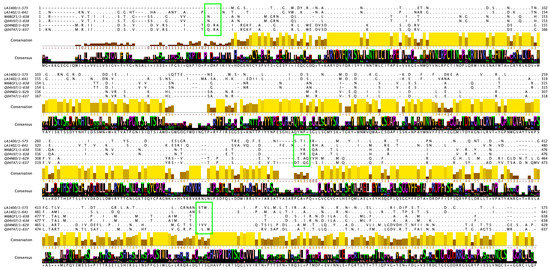 - Waterhouse, A.M.; Procter, J.B.; Martin, D.M.A.; Clamp, M.; Barton, G.J. Jalview Version 2—A multiple sequence alignment editor and analysis workbench. Bioinformatics 2009, 25, 1189–1191. [Google Scholar] [CrossRef]