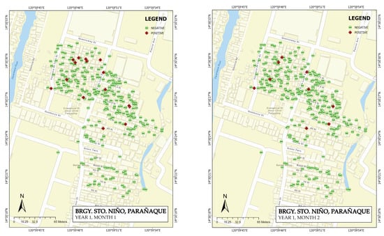 Generated maps of the Sto. Niño site display both the positive and negative serostatus test results, monthly and yearly.