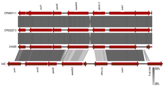 - Sullivan, M.J.; Petty, N.K.; Beatson, S.A. Easyfig: A Genome Comparison Visualizer. Bioinformatics 2011, 27, 1009–1010. [Google Scholar] [CrossRef]