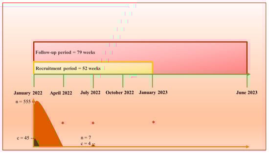 The 79-week (1.5 years) follow-up visits were every 3 months, starting on 26 January 2022 and ending on 30 July 2023 (