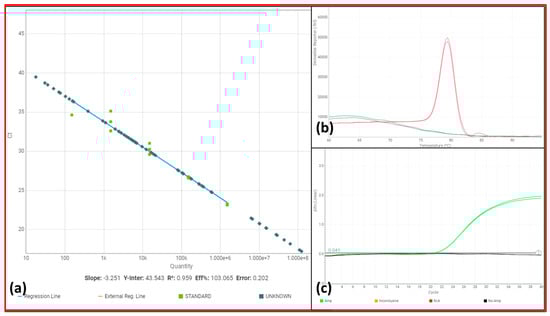 https://www.ncbi.nlm.nih.gov/guide/howto/design-pcr-primers/ (accessed on 1 August 2023)). The reaction was validated using the primer pair 5′-TAATCCCGGTAACGGGTGCT-3′ and 5′-CCACCAGTGATCCACCGTTC-3′, specific for