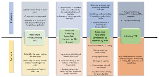 The major attrition was seen at the step of IGRA testing for detecting TBI. This was largely due to the non-availability of testing services, sub-optimal referral mechanisms and protocols for sample collection and transportation. Though the HCWs had persisted in convincing HHCs to complete IGRA testing, health system-related issues contributed to poor coverage of IGRA testing. Inadequate availability of diagnostics is a challenge reported across studies from various study settings [22]. These issues require administrative-level attention and action.