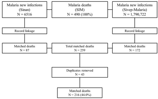 Flowchart of the record linkage process between malaria deaths and cases.