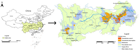 - Wang, S.L.; Li, Y.L.; Zhang, L.J.; Lv, S.; Xu, J. Thinking on schistosomiasis control under the strategy of China’s Yangtze River Economic Belt. Chin. J. Schistosomiasis Control 2019, 31, 459–462. [Google Scholar]