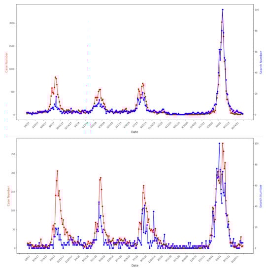 3.1. Identical Seasonal Patterns between Google Trends and Case Data