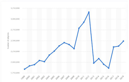 Trend in the number of pilgrims.