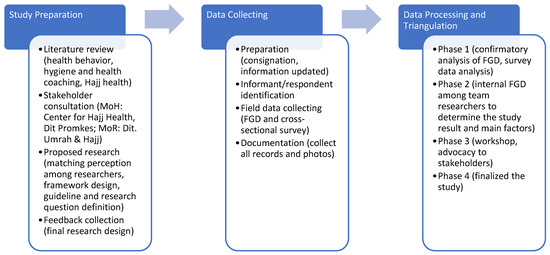 - Radhiah, N.; Nor, M.; Mohamed, R.; Wahab, A.; Osman, O. The Construction of a Measuring Tool for the Health Management Research on Malaysian Hajj Pilgrim: The Focus Group Discussion (FGD) Approach. In Proceedings of the 2nd UMM International Qualitative Research Conference, Penang, Malaysia, 24–26 May 2016. [Google Scholar]