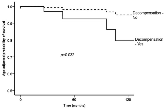 Age-adjusted survival according to development of decompensation.