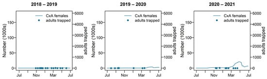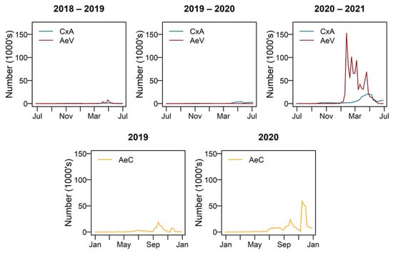 Publicly available datasets were analyzed in this study. Tide height data was obtained from the Department of Transport and are available from https://www.transport.wa.gov.au/imarine/download-tide-wave-data.asp (accessed on 19 November 2021). River height data was obtained from the Department of Transport and are available from https://www.transport.wa.gov.au/imarine/download-tide-wave-data.asp (accessed on 19 November 2021). Restrictions apply to the availability of weather data, which was obtained from the Bureau of Meteorology and are available from http://www.bom.gov.au/climate/data-services/data-requests.shtml (accessed on 21 November 2021) with the permission of the Bureau of Meteorology. Restrictions apply to the availability of mosquito monitoring data, which were obtained from the Town of Bassendean https://www.bassendean.wa.gov.au/your-town/work-with-us/contact-us.aspx (accessed on 21 March 2017). R code is available from the corresponding author upon request. All remaining relevant data are within the paper.
