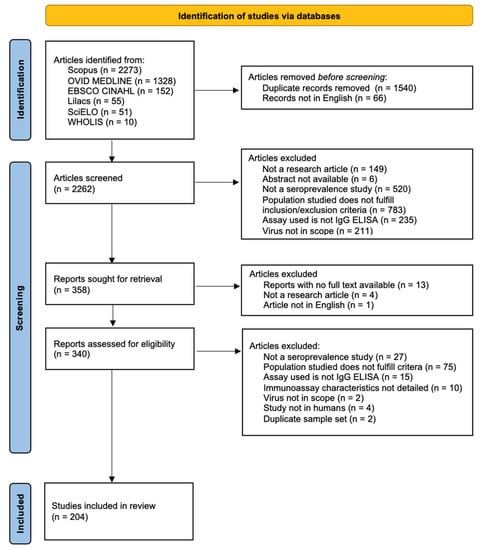 Distribution of flavivirus seroprevalence studies (n = 204).