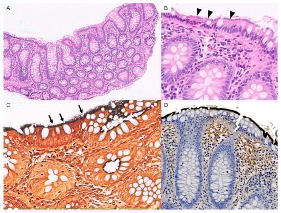The absence of macroscopical inflammation in our series contrasts with the findings of Calderaro et al., who describe hyperemia, mucosal erosion, and inflammatory changes in the 17 patients included in their study [36]. However, our results are similar to those described by Anthony et al., who found no macroscopical inflammation or, at most, minimal inflammatory changes [6].