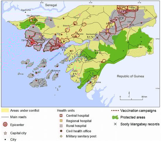 Portugal used healthcare to try to win hearts and minds and counter the trend towards independence. This translated into a re-militarization and expansion of the health services in the hinterland and border areas. In the Portuguese colonies, as elsewhere under colonialism, health was a political tool [22,60]. The PAIGC created a prototype health system in order to affirm its statehood status [51,52]. However, this was a makeshift service, due to the scarce human and material resources and a focus on war-related injuries. Portuguese attacks confined permanent structures (hospitals and other facilities) to the Republic of Guinea and to Senegal. Ultimately, this service was incapable of triggering and supporting the epidemic’s spread.