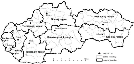 Slovakia is a country with large regional differences, which result from historical, geographical, and cultural differences, but mainly from different levels of economic development. An important role is played by the composition of the population, which gives rise to differences in educational level, social area, and overall economic performance of the regions. To a large extent, it also concerns population development and its individual demographic processes and structures. It turns out that the ongoing transformation of family and reproductive behavior has deepened many of them. Since the beginning of the new millennium, we have witnessed the halt or termination of some established development trends. In some cases, the opposite tendencies that the 1990s brought with them are even being enforced. It seems that the main and most dynamically ongoing part of the transformation of family and reproductive behavior is in the past, and the new model of demographic reproduction is stabilizing. In addition, we are witnessing the extension of life and an increase in the role of migration in population development, which, together with irregularities in the age structure, is reflected in the dynamism of population aging. As for the development of Slovakia’s urbanization, it has changed significantly in the last decade. It manifests itself in the form of concentrated deconcentration and with certain suburbanization tendencies when part of the population from large cities relocates to satellites in their catchment areas [27].