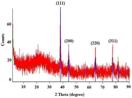 X-ray diffraction (XRD) pattern of synthesized gold nanoparticles (Au-NCs).