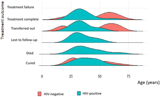 In HIV-negative patients, there were younger and older people who had treatment failure, completed treatment, and were cured compared to HIV-positive patients. The economically active age group had more patients in all categories of treatment outcomes (Figure 6).