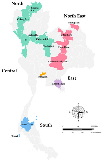 A Map of Thailand Indicates the Regions and Provinces where the Stool Samples were Collected.