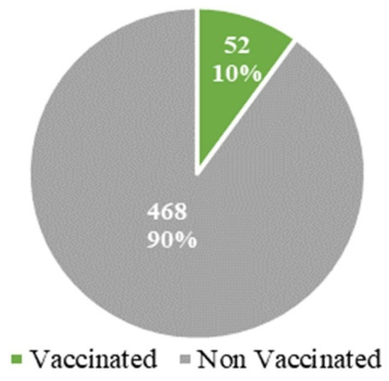 Out of 520 participants in the study, only 52 were vaccinated, representing 10% of the total sample (Figure 1).