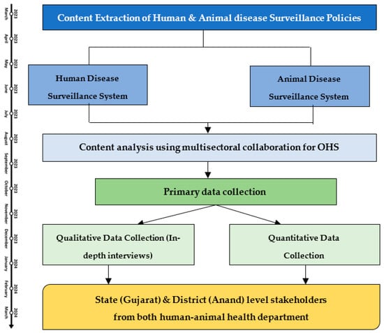 This study involves the descriptive and explanatory arm; the findings will be triangulated during the analysis. The quantitative analysis will provide insight into the attributes of the current surveillance system. In contrast, the qualitative data will use these attributes to infer how to manifest the cross-sectoral collaborations for early warning response. All the quantitative and qualitative data will be triangulated at the end. This study will provide insight into the current levels of cross-sectoral collaboration for the OHS, which is essential for detecting emerging threats early and developing an early warning response system. Further, this will also assist in documenting the attributes for strengthening cross-sectoral collaborations among these systems. Additionally, the triggers for cross-sectoral collaboration will be one of the findings from this study. This exercise will be the first of its kind at the state level, boosting the programmatic performance and assisting in envisioning the OHS in Gujarat.