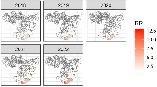 3.4. The Result of the Spatiotemporal Bayesian Regression Model