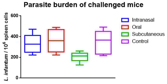 - Rolão, N.; Melo, C.; Campino, L. Influence of the inoculation route in BALB/c mice infected by Leishmania infantum. Acta Trop. 2004, 90, 123–126. [Google Scholar] [CrossRef]