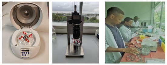 - Sukas, S.; Van Dorst, B.; Kryj, A.; Lagatie, O.; De Malsche, W.; Stuyver, L.J. Development of a lab-on-a-disk platform with digital imaging for identification and counting of parasite eggs in human and animal stool. Micromachines 2019, 10, 852. [Google Scholar] [CrossRef]