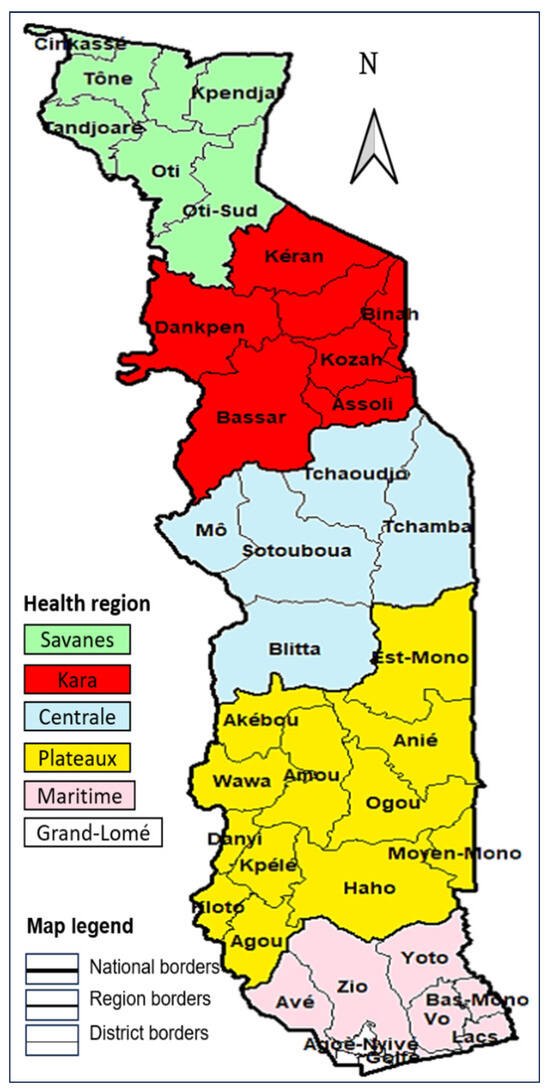 Togo regions and health districts.