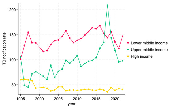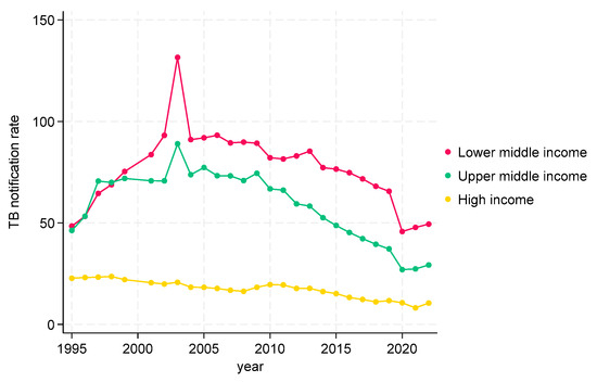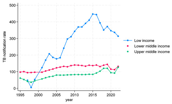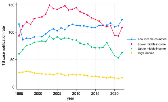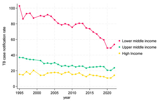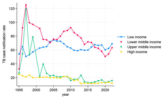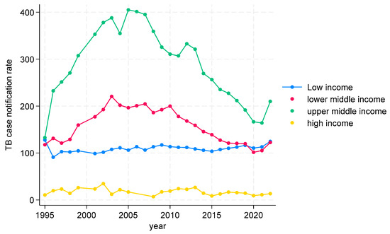 3.2.1. TB CNRs from 1995 to 2022 by Income at Global Level