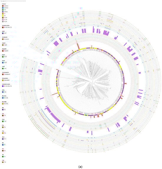 - Spadar, A.; Perdigão, J.; Campino, S.; Clark, T.G. Large-scale genomic analysis of global Klebsiella pneumoniae plasmids reveals multiple simultaneous clusters of carbapenem-resistant hypervirulent strains. Genome Med. 2023, 15, 3. [Google Scholar] [CrossRef]